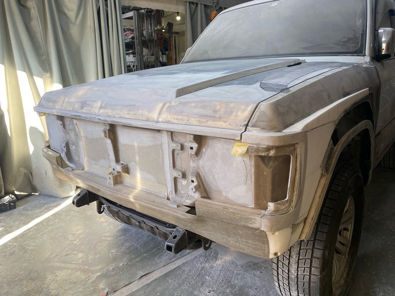 単純に顔面移植ではなくボンネット・フェンダーエプロン・インナーフレーム全てにこだわり再現しております。全て型枠を制作しフルFRPで再現することができました。安価で薄いFRPパーツにはしたくなく高級感あるパーツを目指しました。