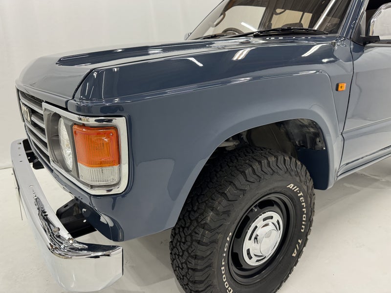 フェンダーの溝とボディーライン:ランクル60の流曲線と95プラドののプレスラインを合わせランクル60に違和感なく近づけました。